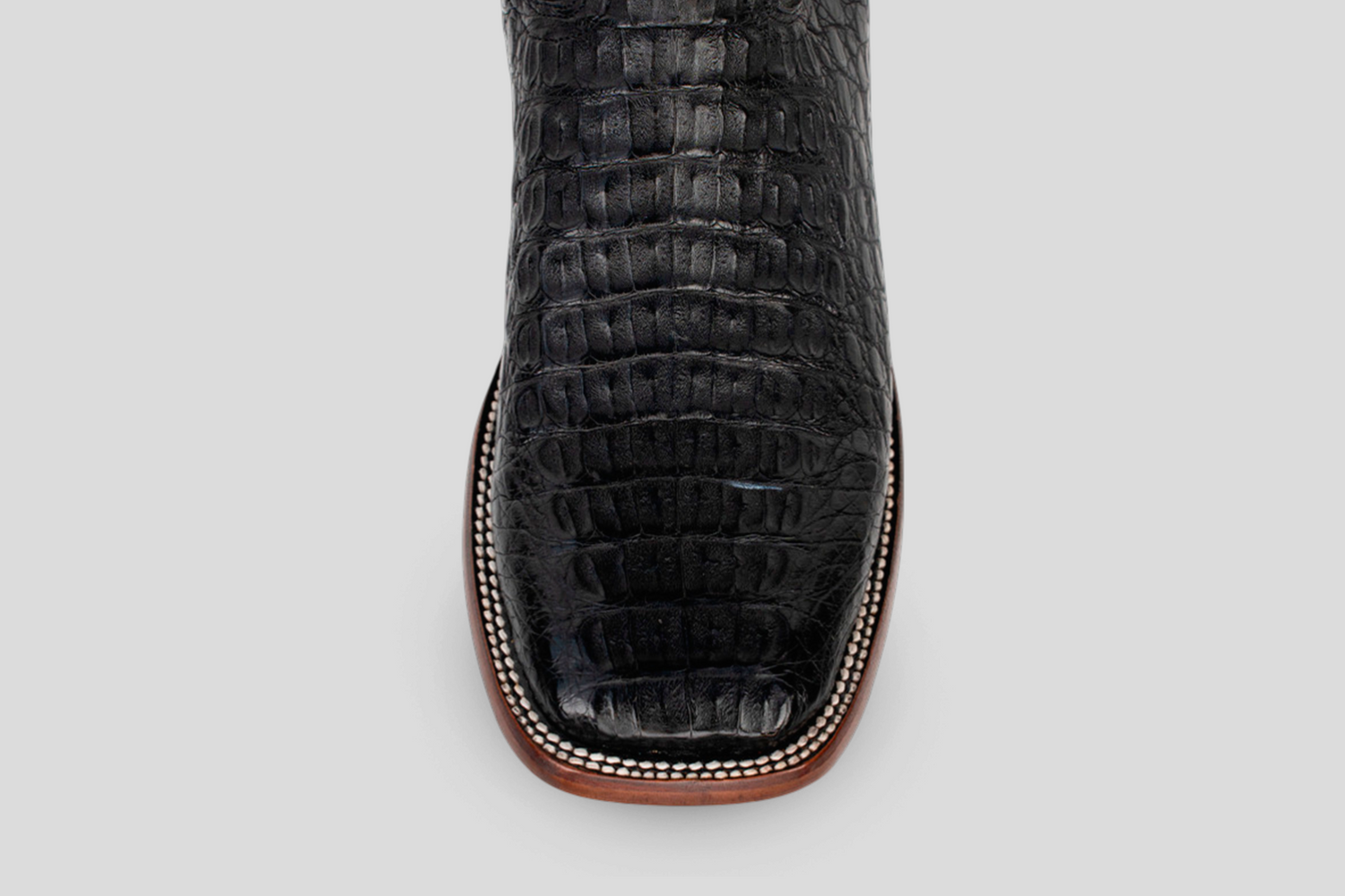 Step into luxury with our Ranger Exotic Caiman Horn Back boots in Black. Featuring a sophisticated square toe design, these Diamond Collection boots merge exotic elegance with unmatched comfort. The genuine caiman horn back leather showcases natural texture and durability that improves with wear. Perfect for both special occasions and everyday western wear, these boots deliver timeless style and reliable performance.