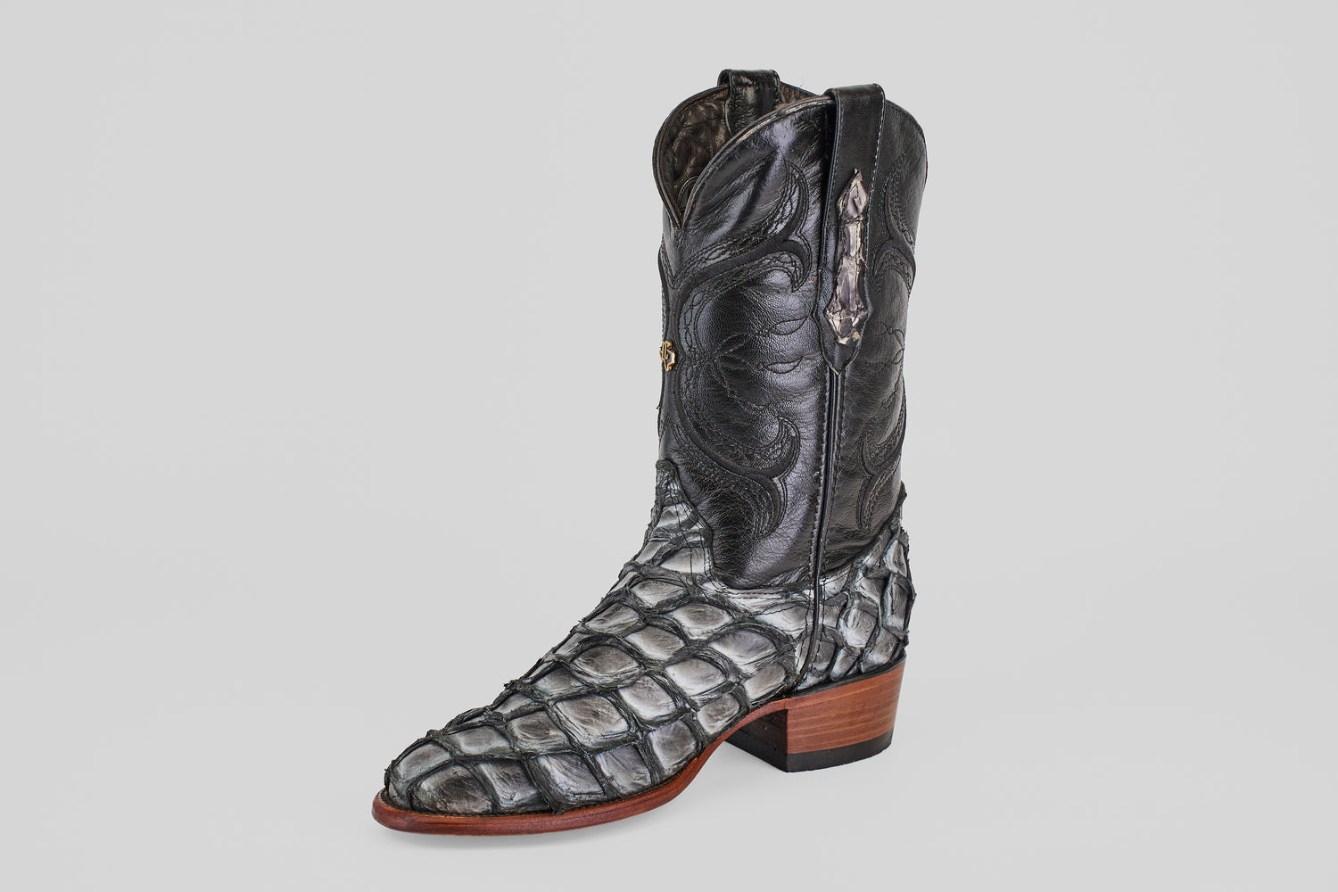 Elevate your style with the Exotic Pirarucu Fish Roper Toe Boots! Crafted from unique pirarucu fish leather, these boots showcase a stunning texture and vibrant hues. Designed for comfort and durability, they’re perfect for making a statement while standing out in any crowd. Step into luxury today!