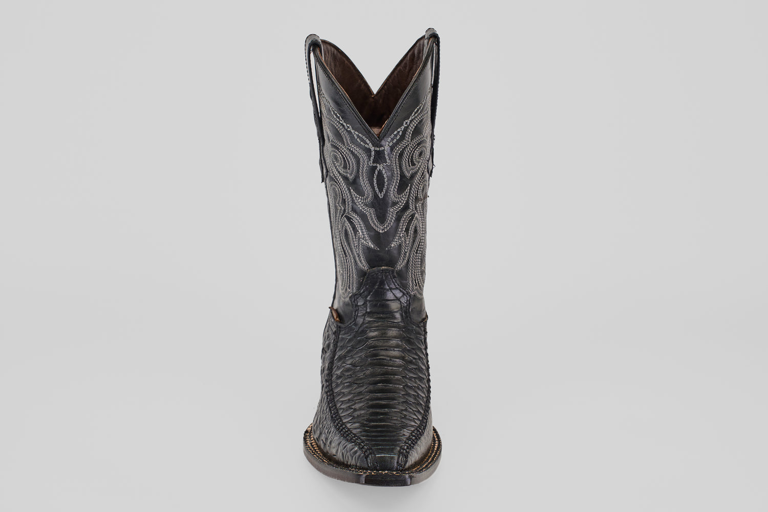 Elevate your western style with the Python Black - Embossed Leather - Versy Toe cowboy boots